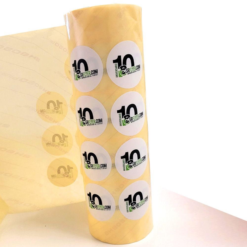 Las etiquetas en rollo son elaboradas en un material adhesivo adecuado al sustrato donde los pegarás. Con nuestra atención personalizada encontrarás las pegatinas ideales para tu producto. Entre las características a elegir se encuentra el tamaño y la forma.
